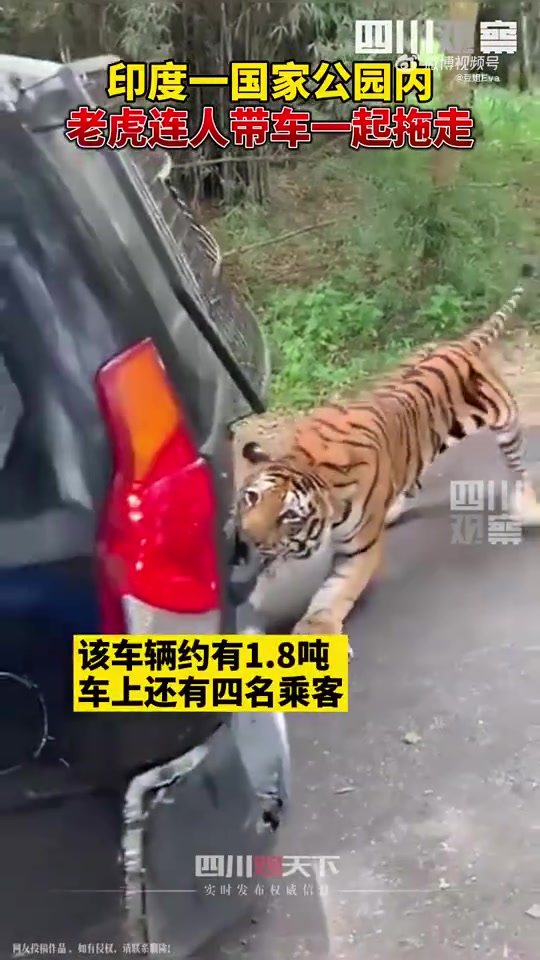 >印度一公园内老虎连人带车拖走,尽显森林之王威力