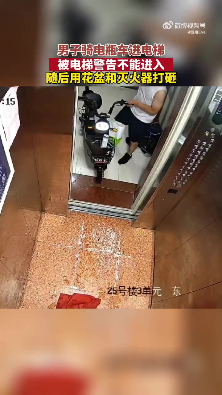 河北邯郸一男子因骑电动车进电梯受阻,怒砸电梯被拘