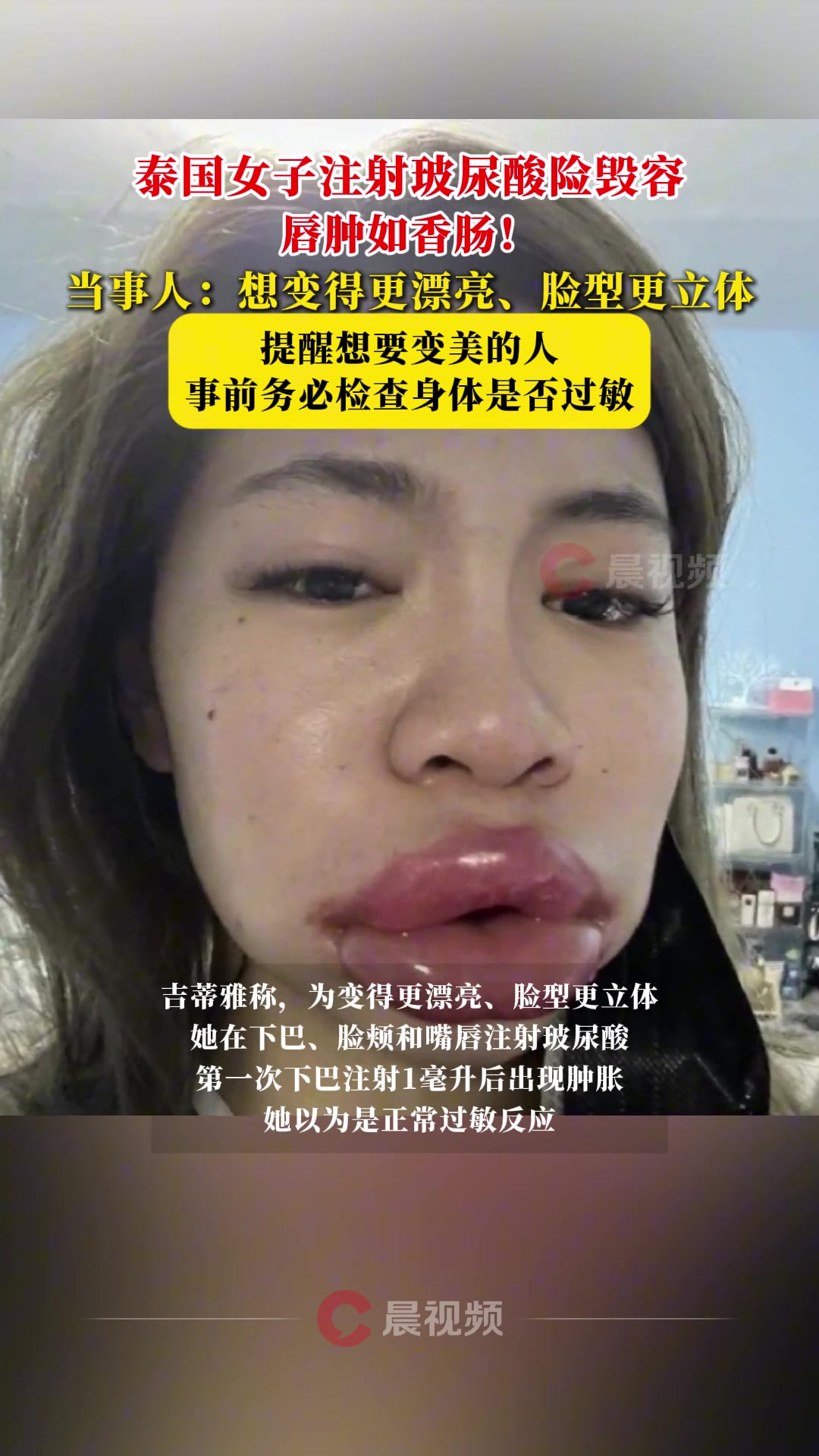 唇肿如香肠!泰国女子注射玻尿酸险毁容