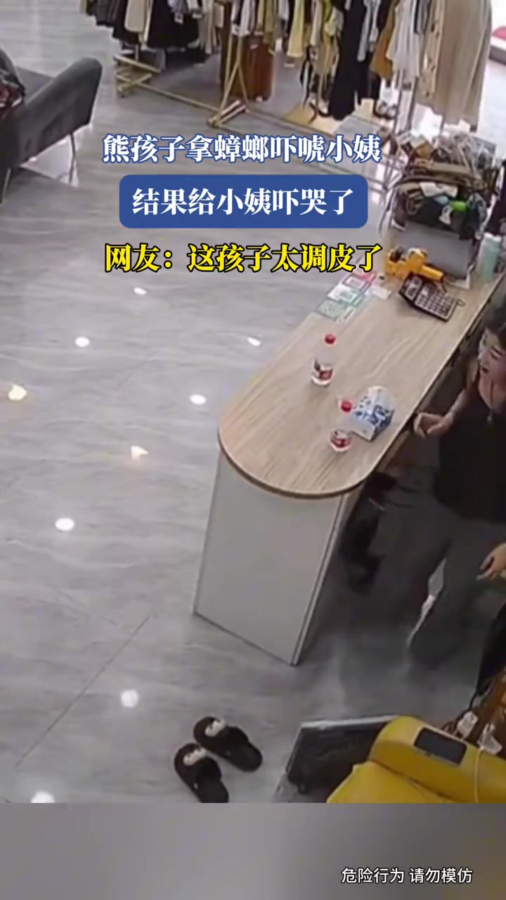 >熊孩子拿蟑螂吓唬小姨,结果给小姨吓哭了!!!