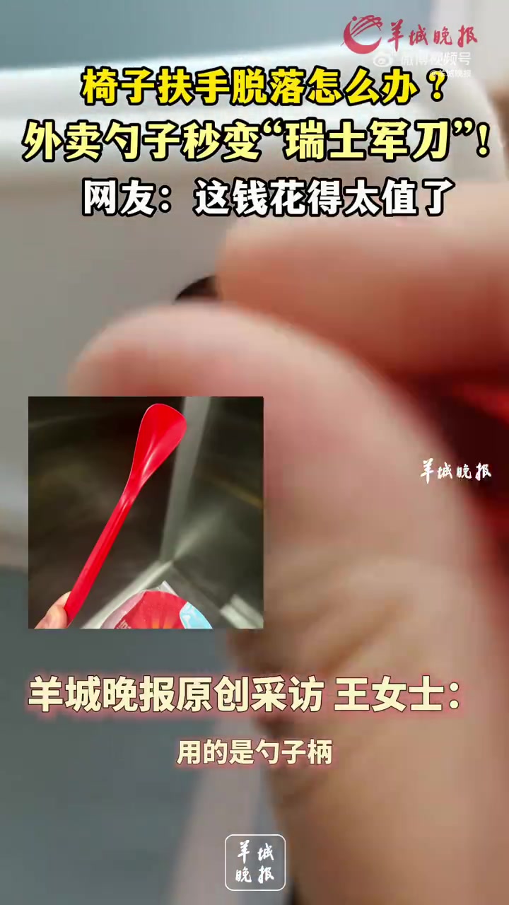 >紧急时刻!安徽女子用奶茶勺当螺丝刀修椅子