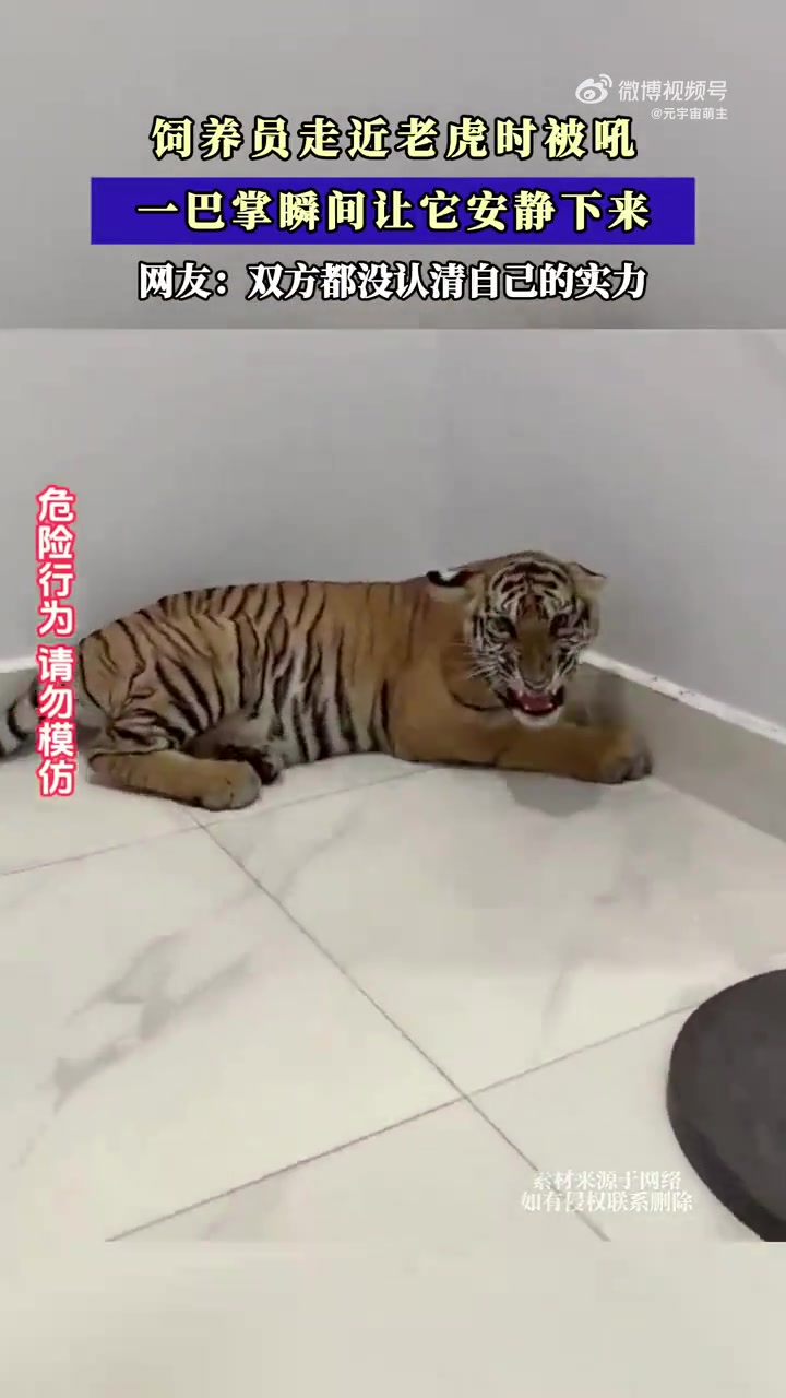 >饲养员靠近老虎遭吼叫,一巴掌使其瞬间安静