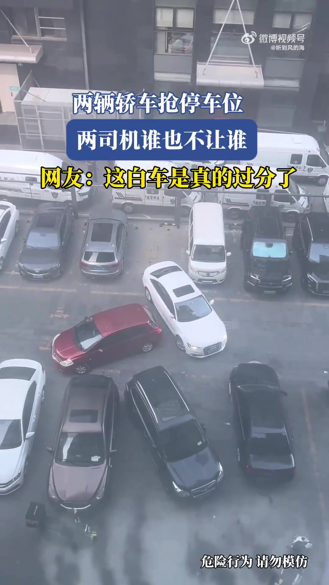 >两辆轿车抢停车位,两司机谁也不让谁!!