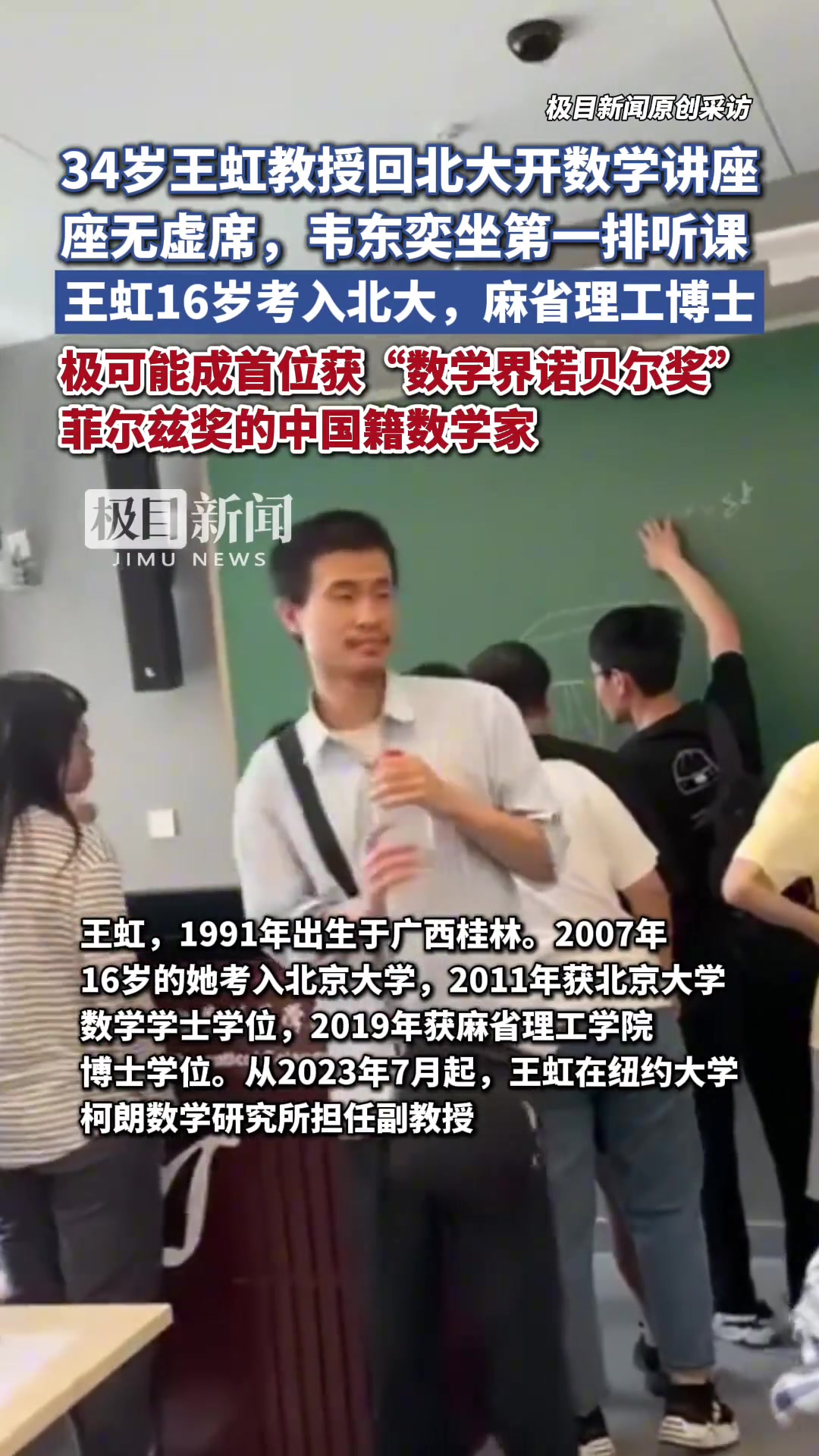 >34岁王虹教授回北大开数学讲座,座无虚席,韦东奕坐第一排听课