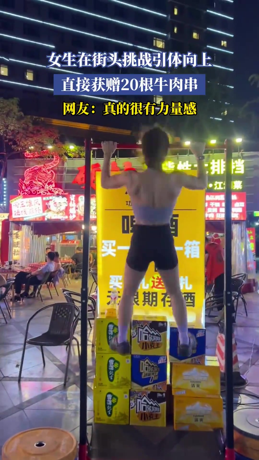 >女生街头挑战引体向上,成功获赠20根牛肉串