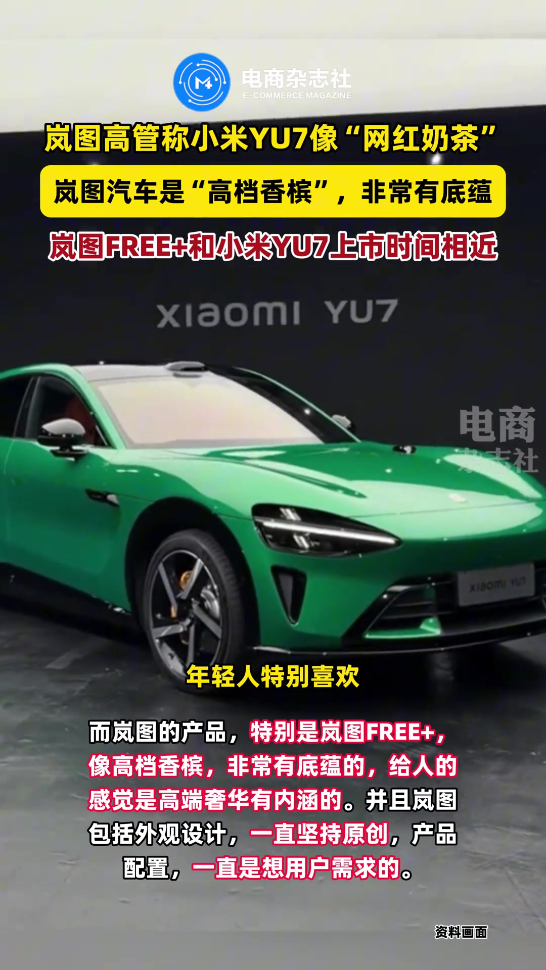 岚图高管称小米YU7像网红奶茶,岚图FREE+是高档香槟。