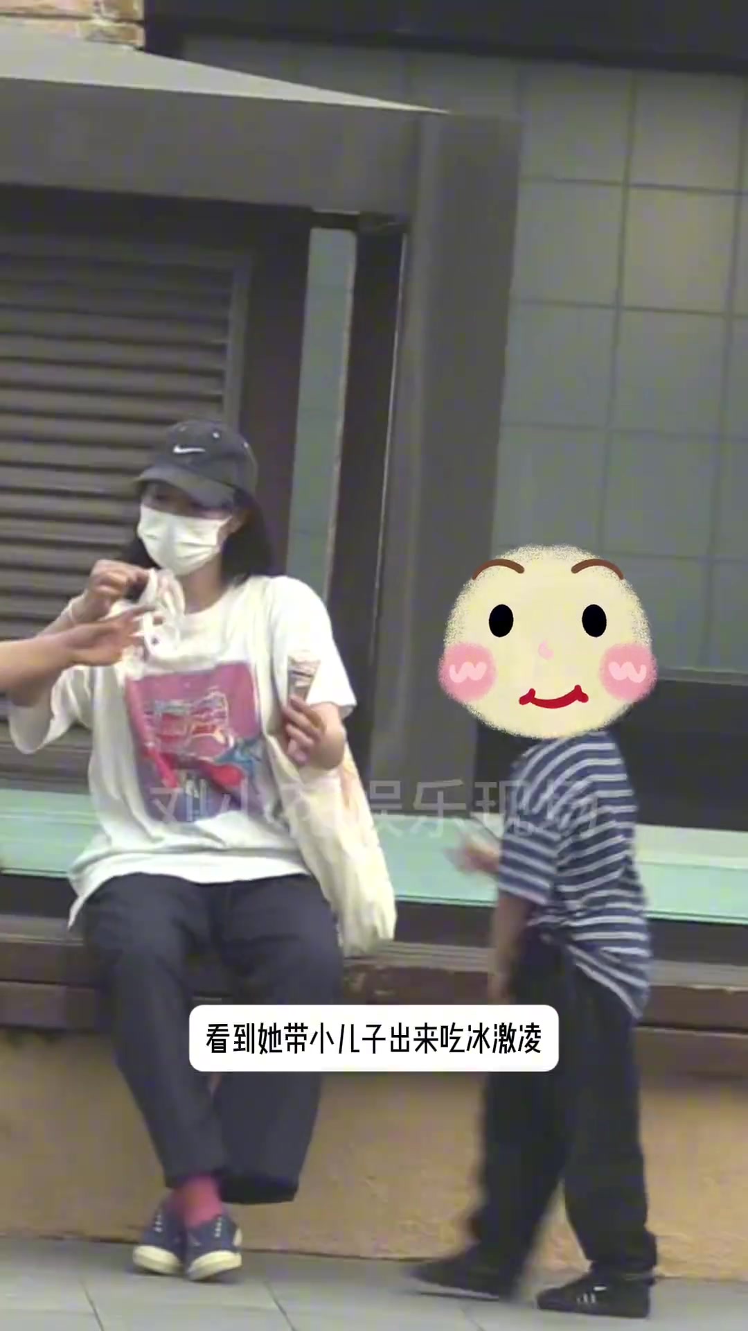 >白百何被拍到在路上带娃出来吃冰淇淋