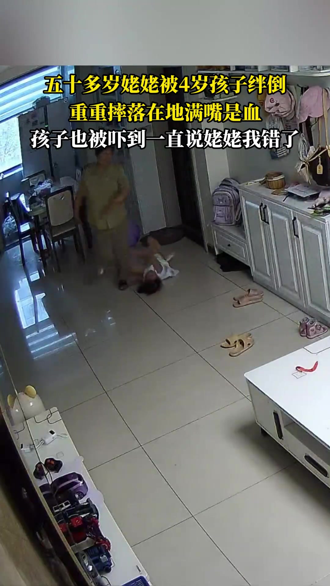 >五十多岁姥姥被4岁孩子绊倒,重重摔落在地满嘴是血