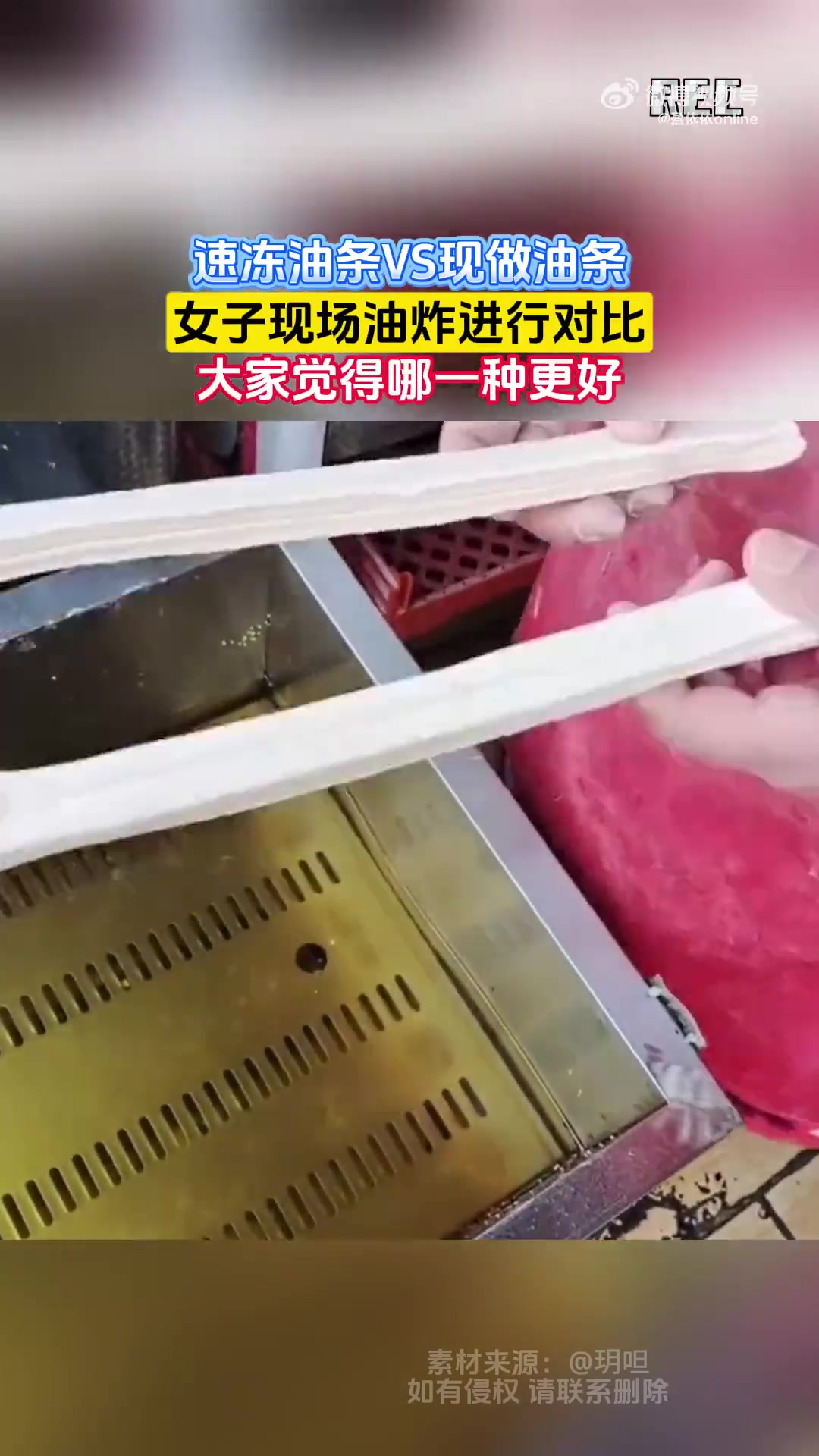 速冻油条VS现做油条,女子现场油炸进行对比!