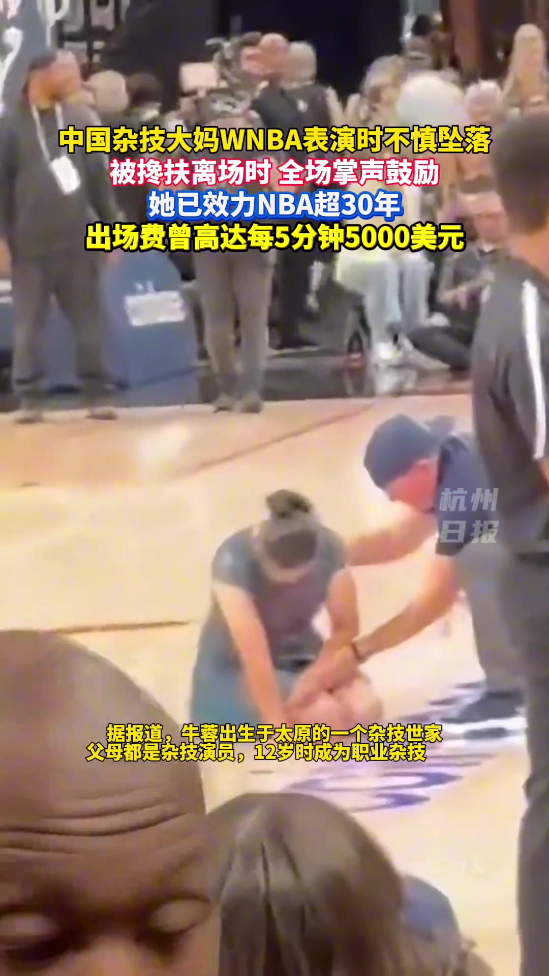 >中国杂技大妈WNBA表演时不慎坠落,被搀扶离场!