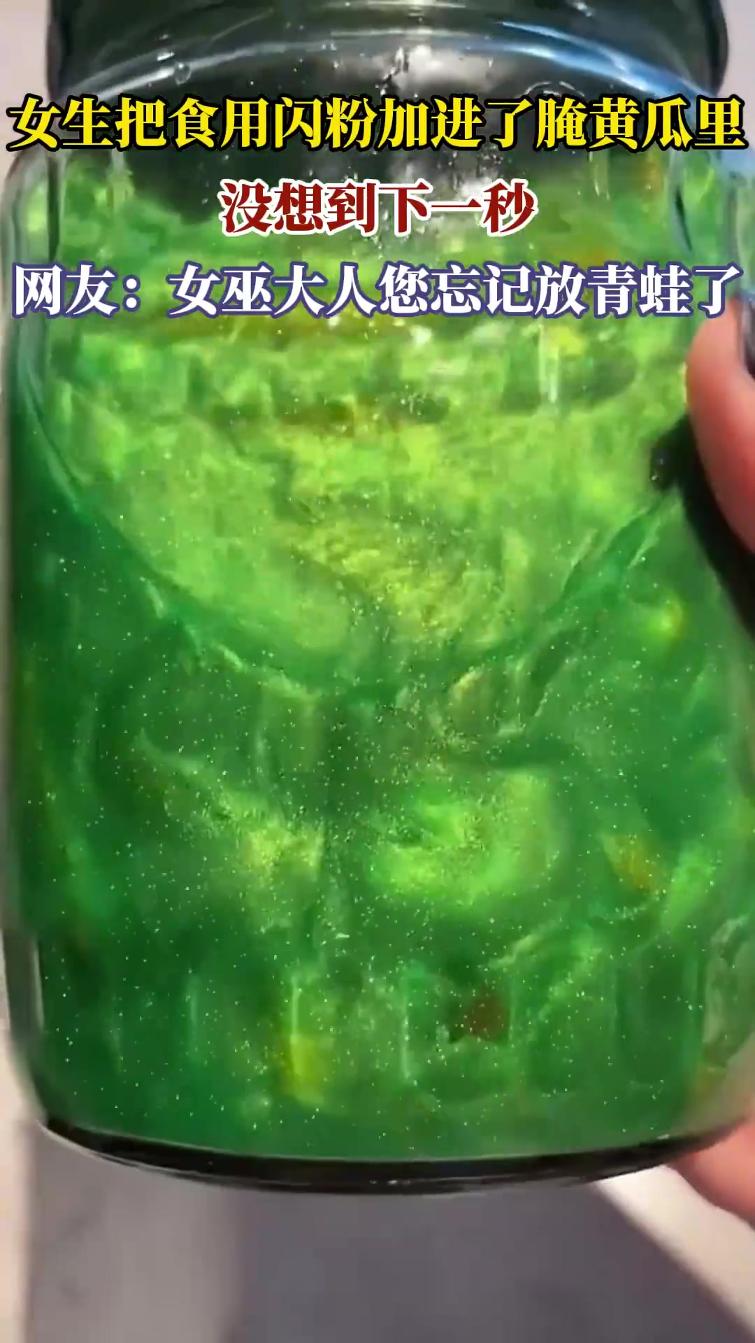 女生把食用闪粉加进了腌黄瓜里,没想到下一秒!