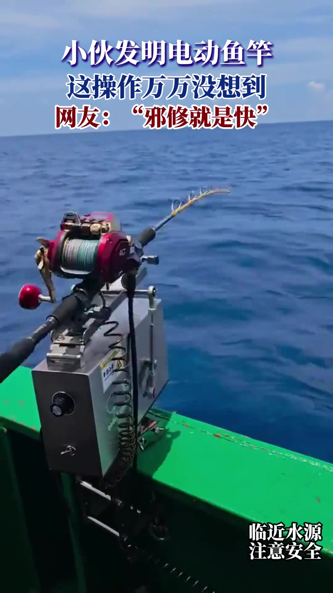 小伙发明电动鱼竿,这操作万万没想到,网友:邪修就是快