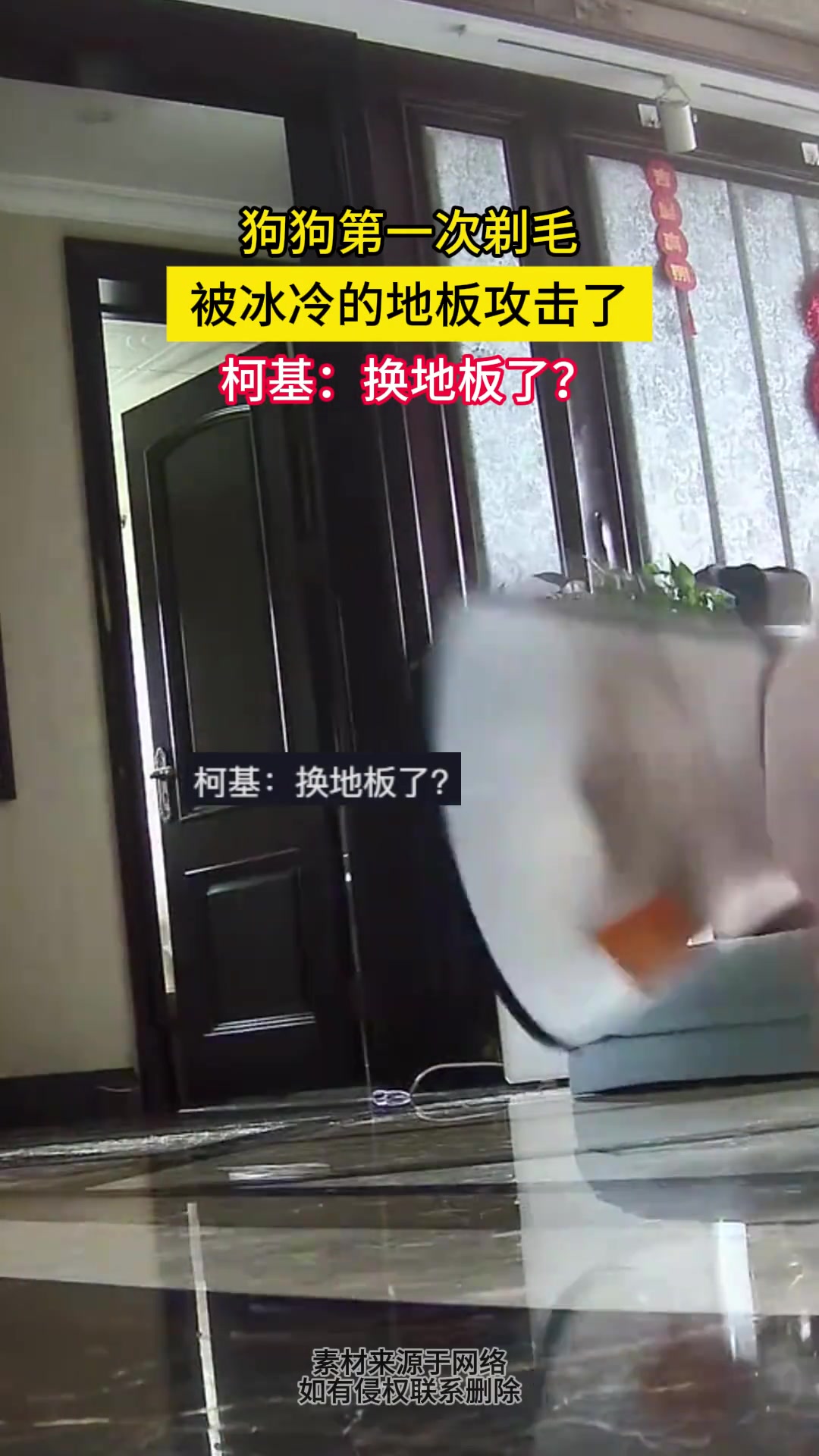 >狗狗第一次剃毛,被冰冷的地板攻击了,柯基:换地板了