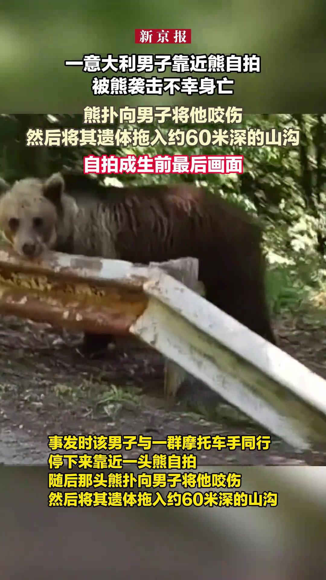 >男子靠近熊自拍被熊袭击不幸身亡 熊扑向男子将他咬伤