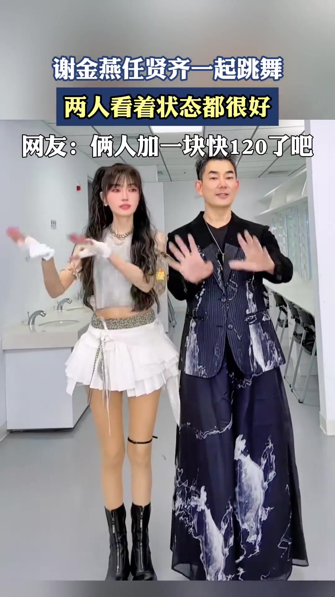 >谢金燕任贤齐一起跳舞,两人看着状态都很好。
