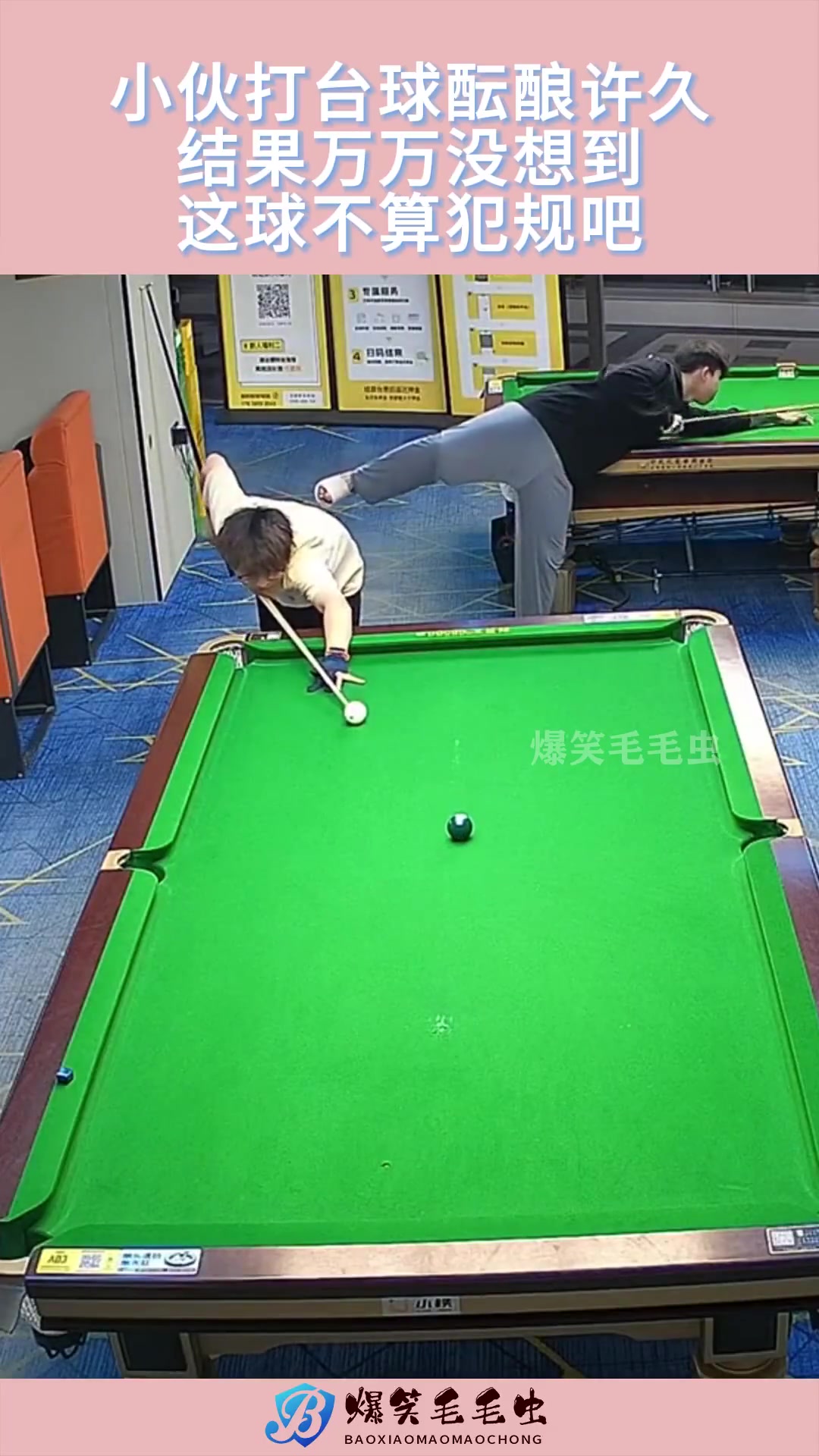 >小伙打台球酝酿许久,结果万万没想到,这球不算犯规吧!