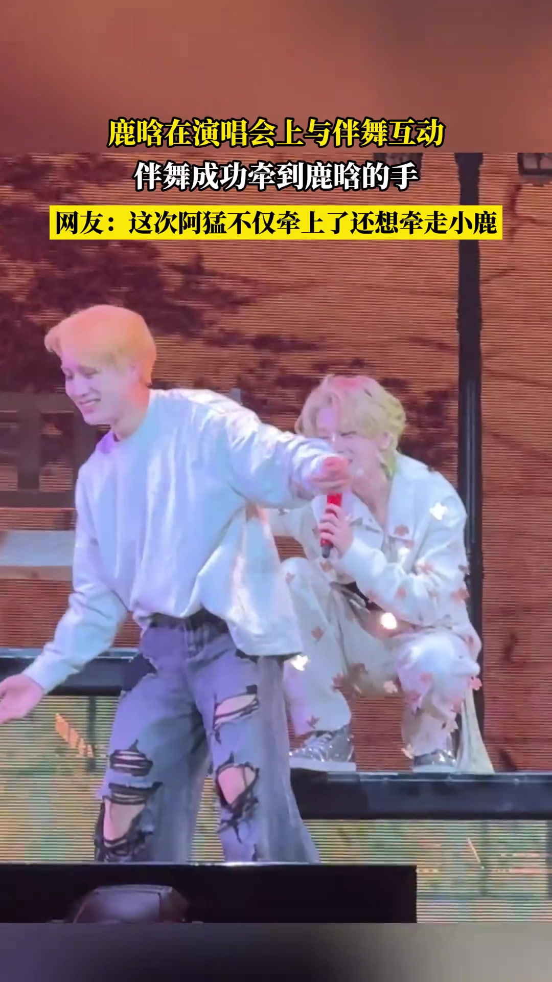 鹿晗在演唱会上与伴舞互动,伴舞成功牵到鹿晗的手