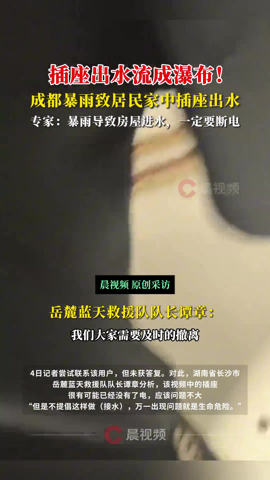 插座出水流成瀑布!成都暴雨致居民家中插座出水