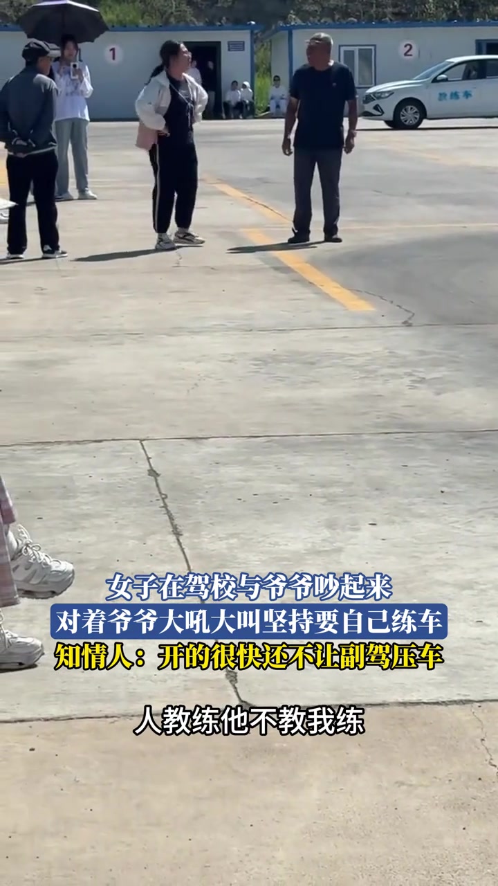 >女子在驾校与爷爷吵起来,对着爷爷大吼大叫坚持要自己练车