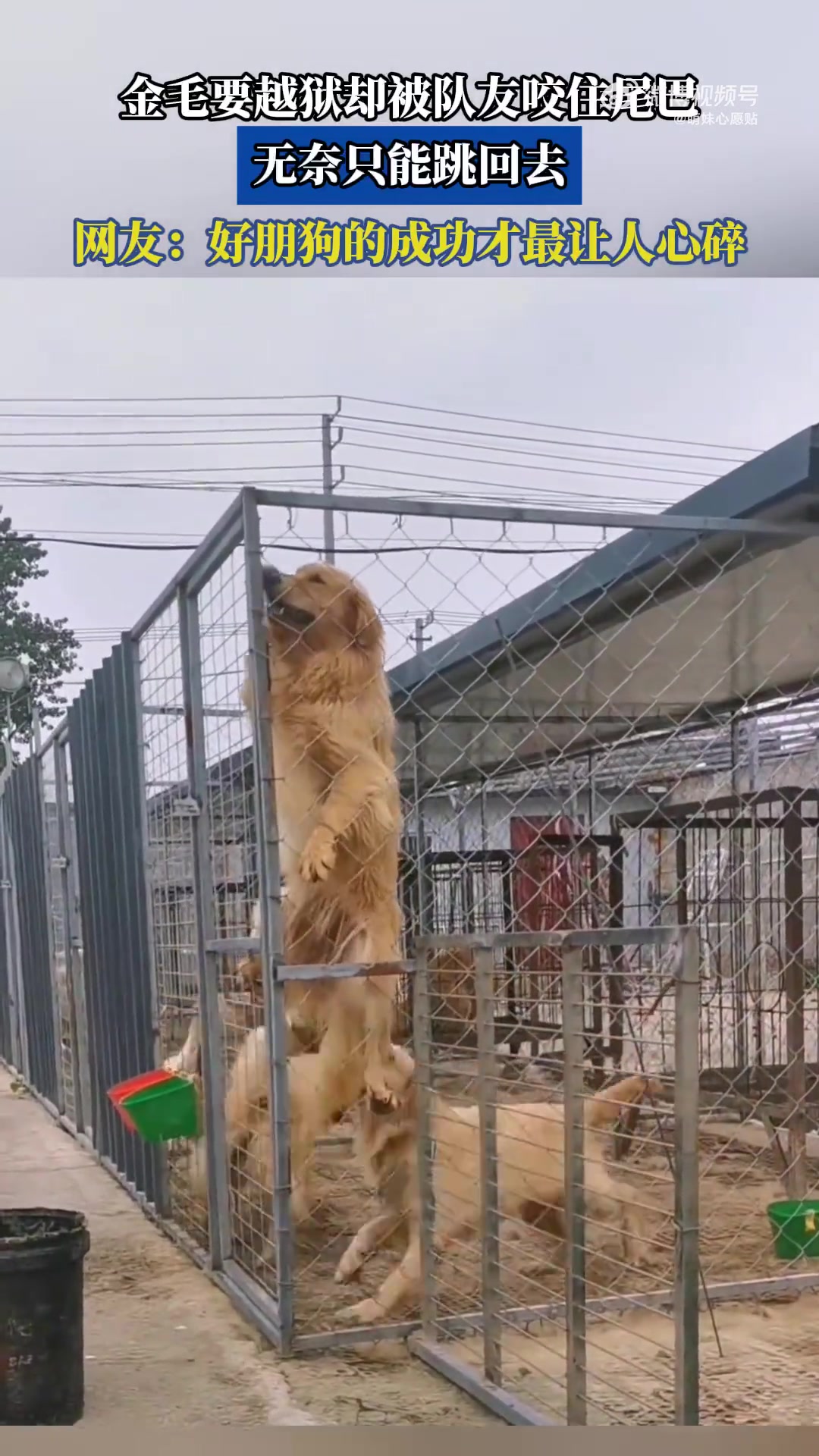 >金毛要越狱却被队友咬住尾巴,无奈只能跳回去