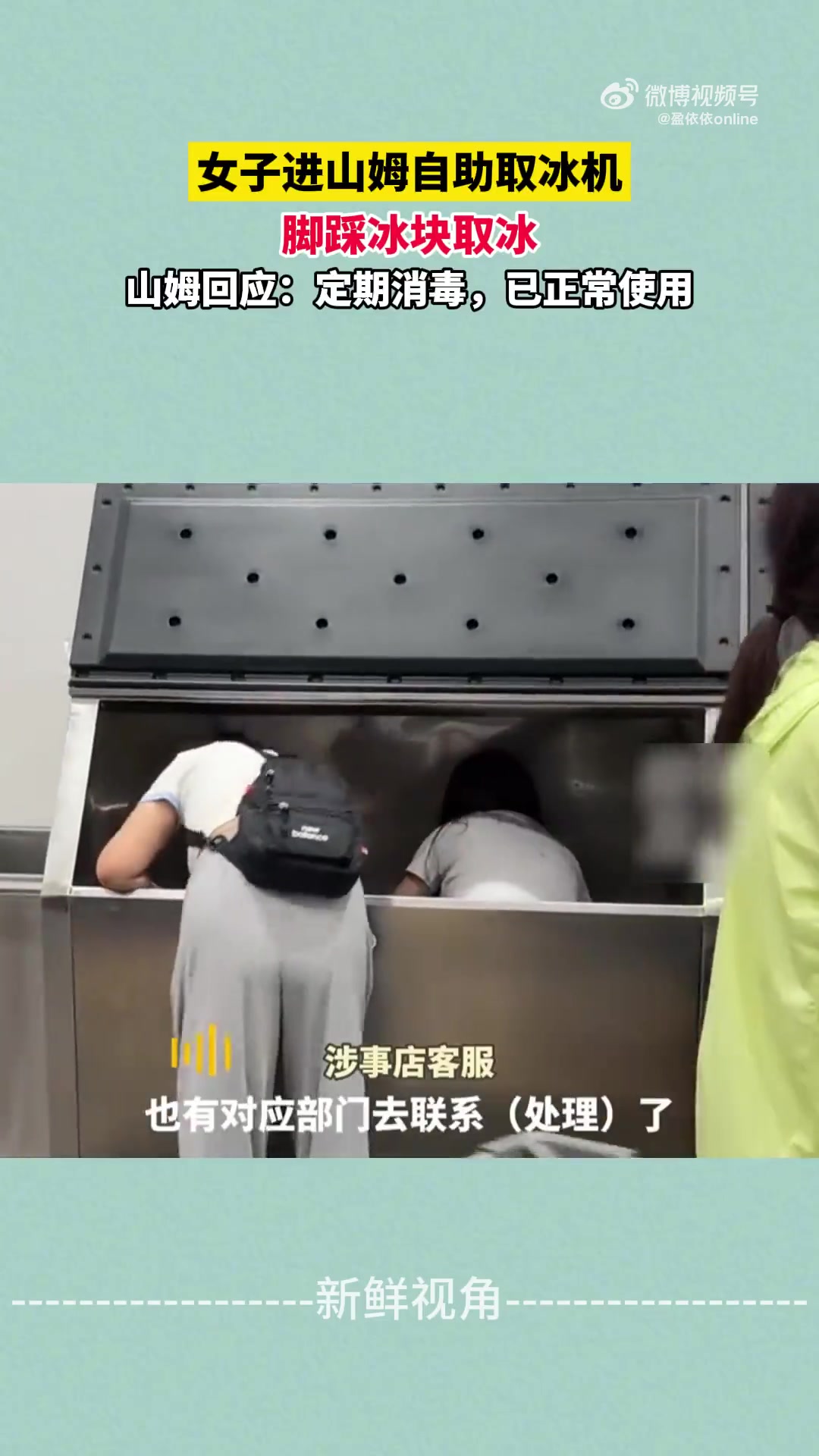 >女子进山姆自助取冰机 脚踩冰块取冰 山姆回应:定期消毒