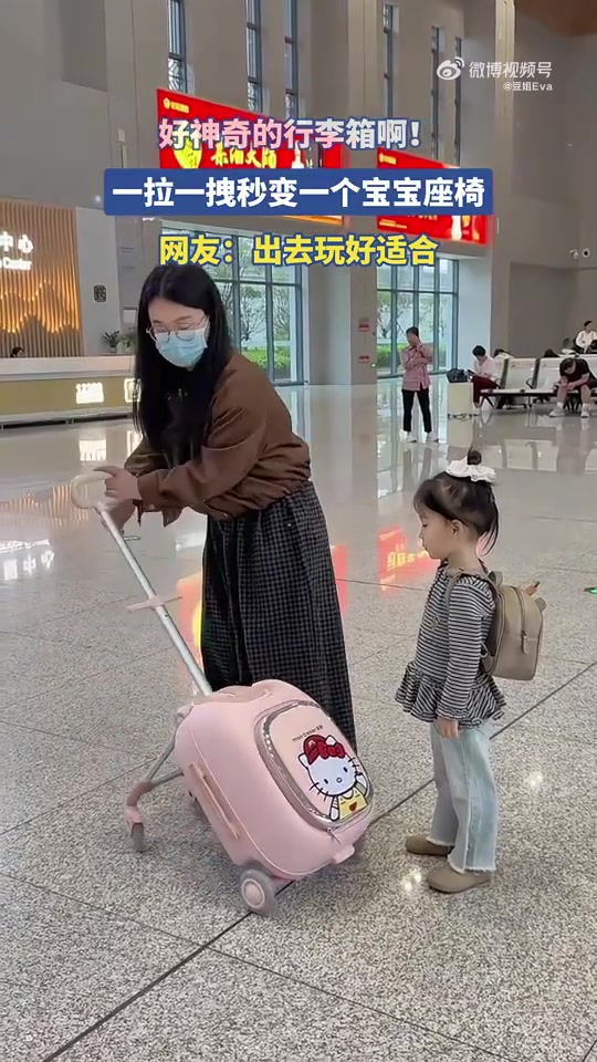 >好神奇的行李箱啊!一拉一拽秒变一个宝宝座椅。