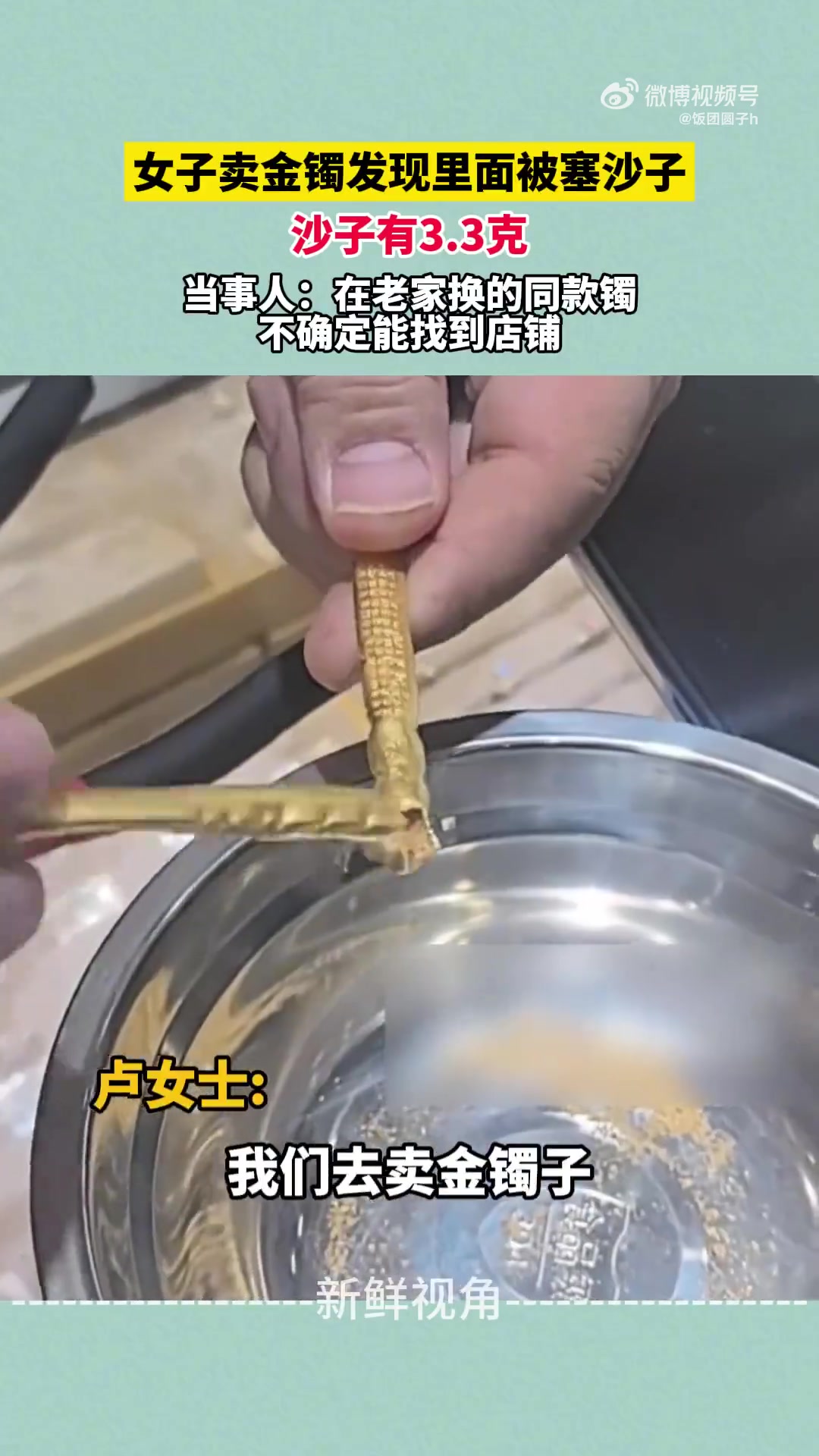 女子卖金镯发现里面被塞沙子 沙子有3.3克