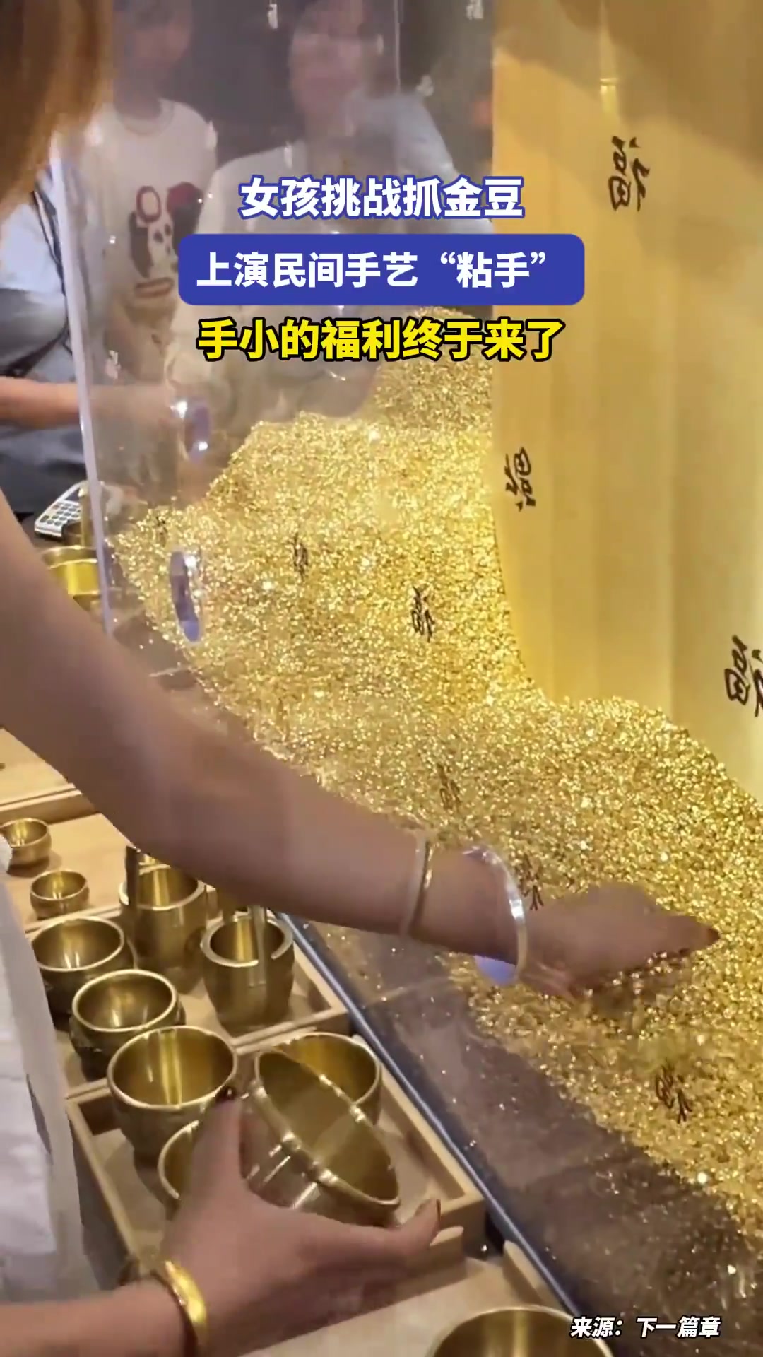>女孩挑战抓金豆,上演民间手艺“粘手”!手小的福利终于来了