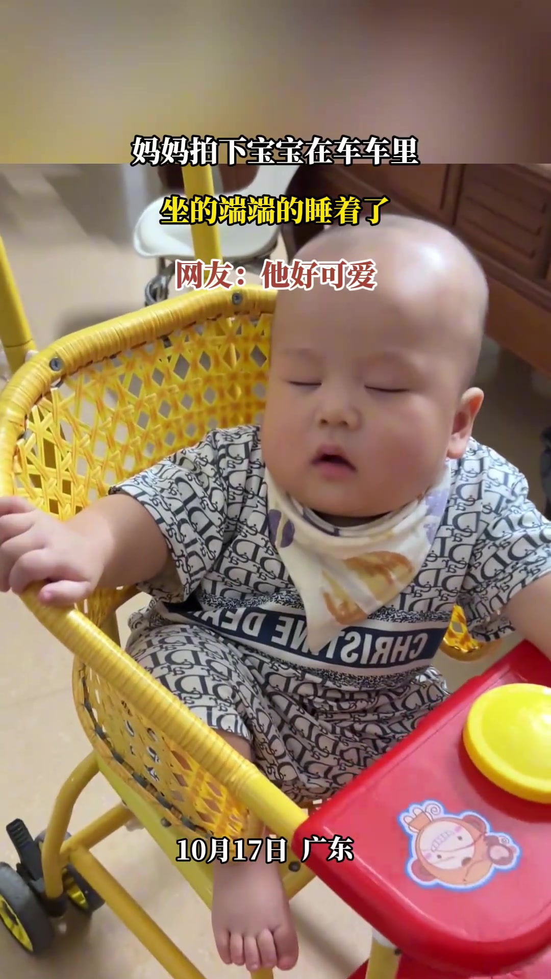 >妈妈拍下宝宝在车车里,坐的端端的睡着了,网友:他好可爱