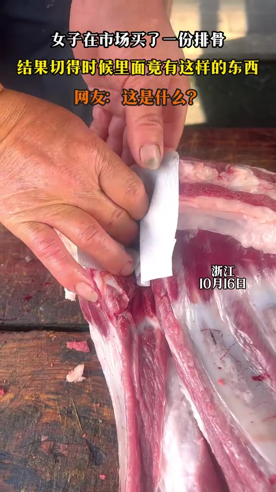 >女子在市场买了一份排骨,结果切得时候里面竟有这样的东西