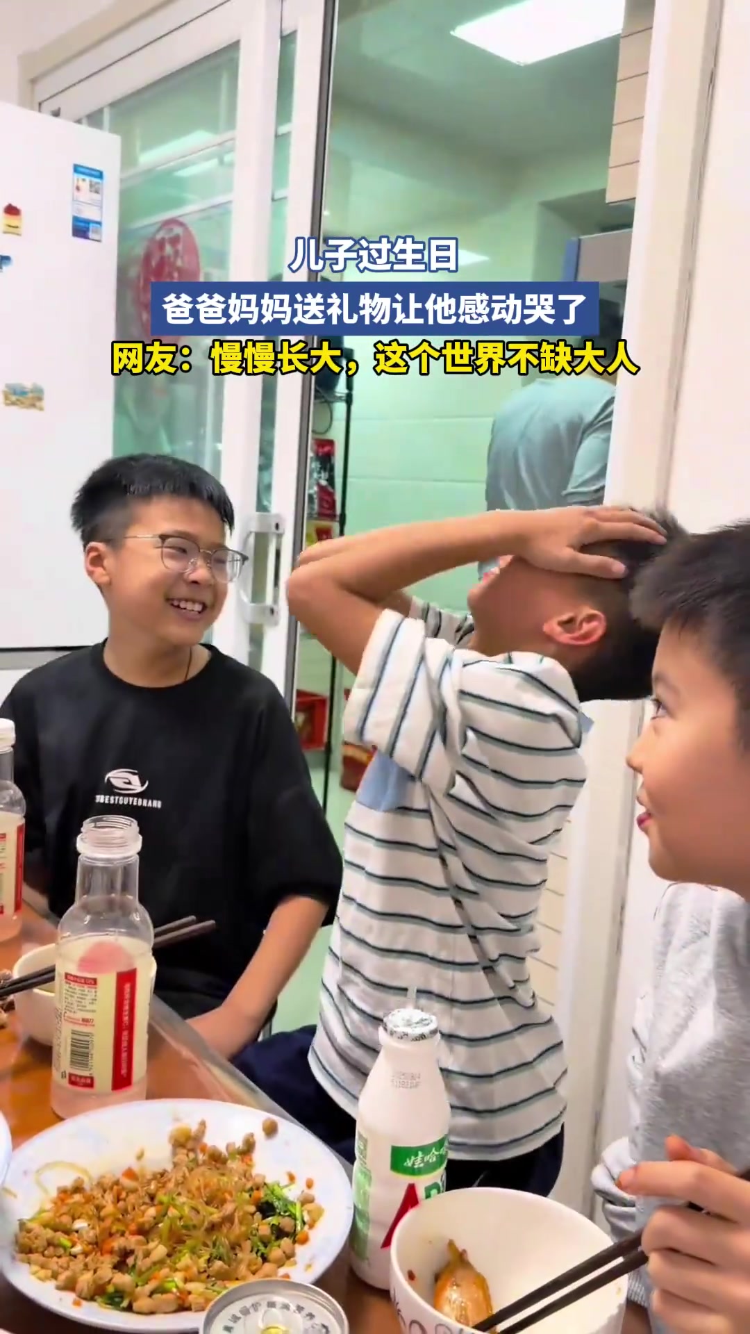 >儿子过生日,爸爸妈妈送礼物让他感动哭了