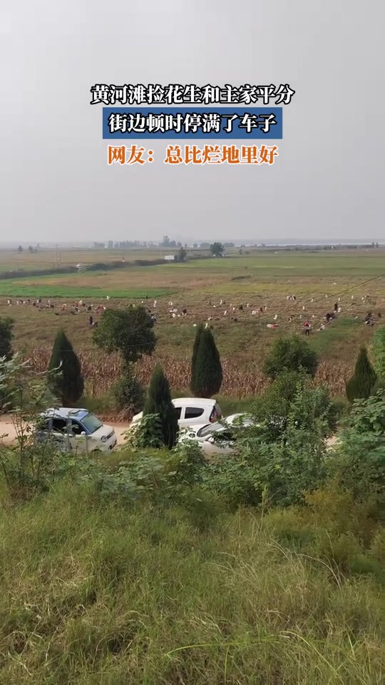 黄河滩捡花生和主家平分,街边顿时停满车子,网友:总比烂地里好