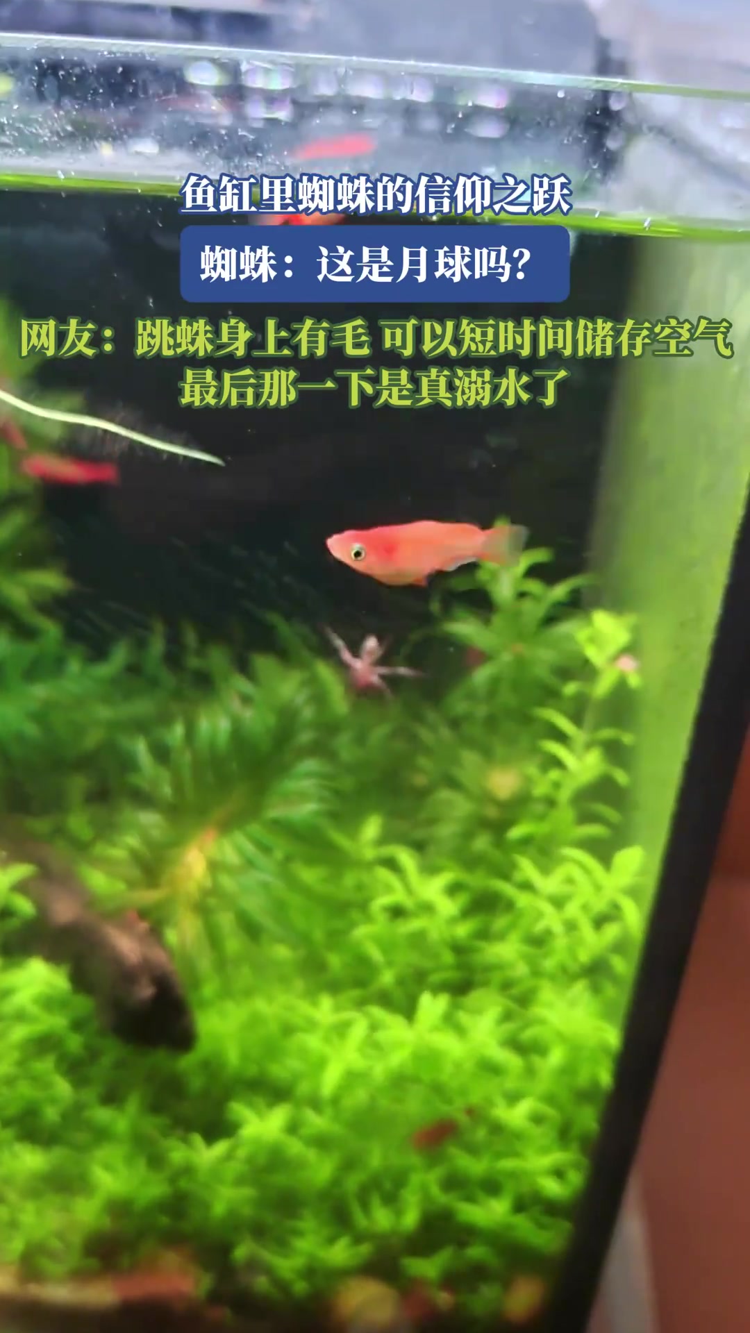 >鱼缸里蜘蛛的信仰之跃,网友:最后那一下是真溺水了