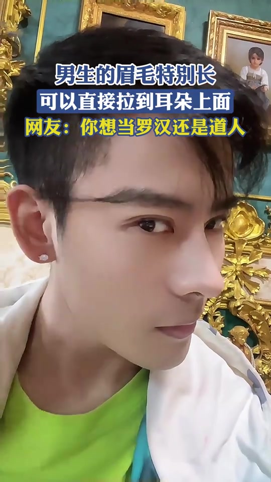 >男生的眉毛特别长,可以直接拉到耳朵上面,网友:这叫长寿眉