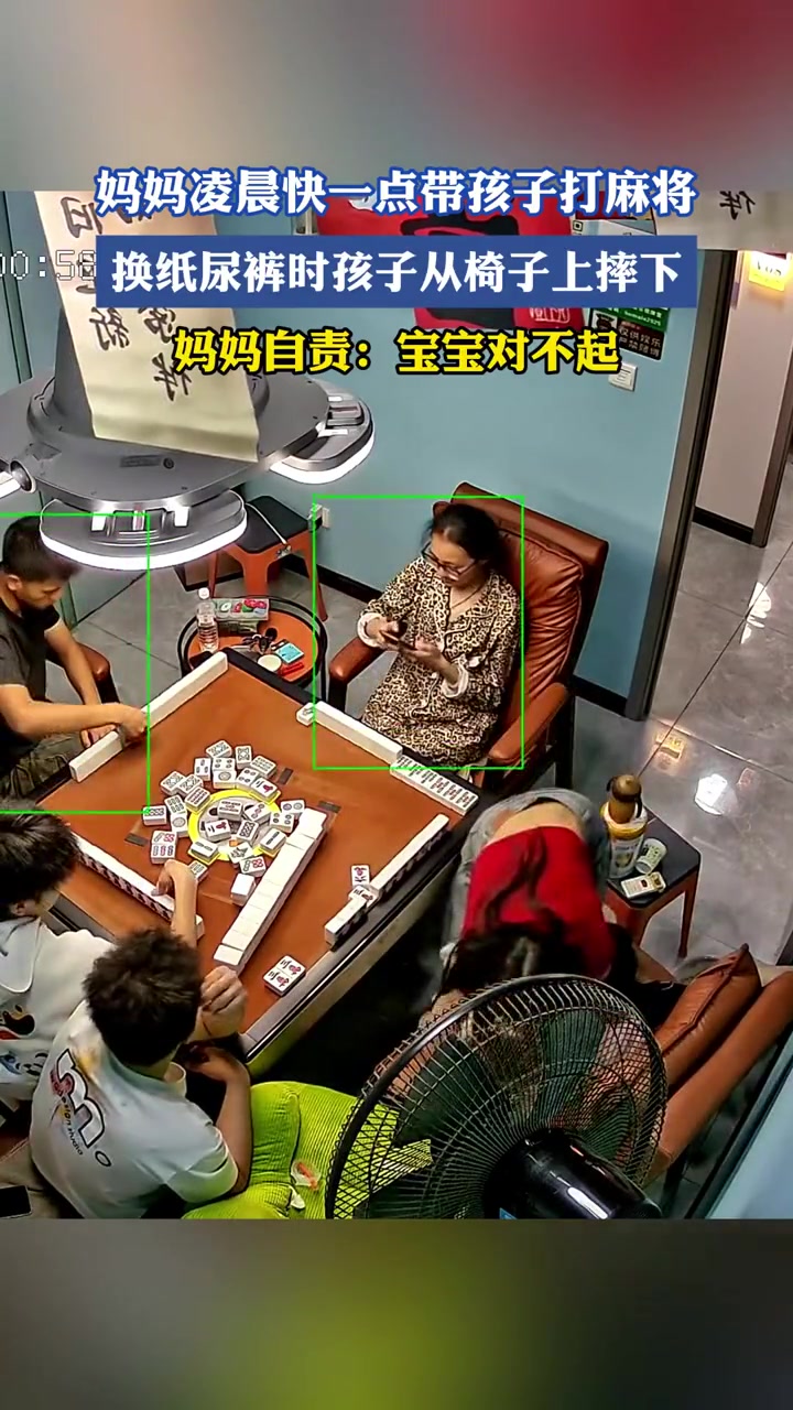 妈妈凌晨快一点带孩子打麻将,换纸尿裤时孩子从椅子上摔下!