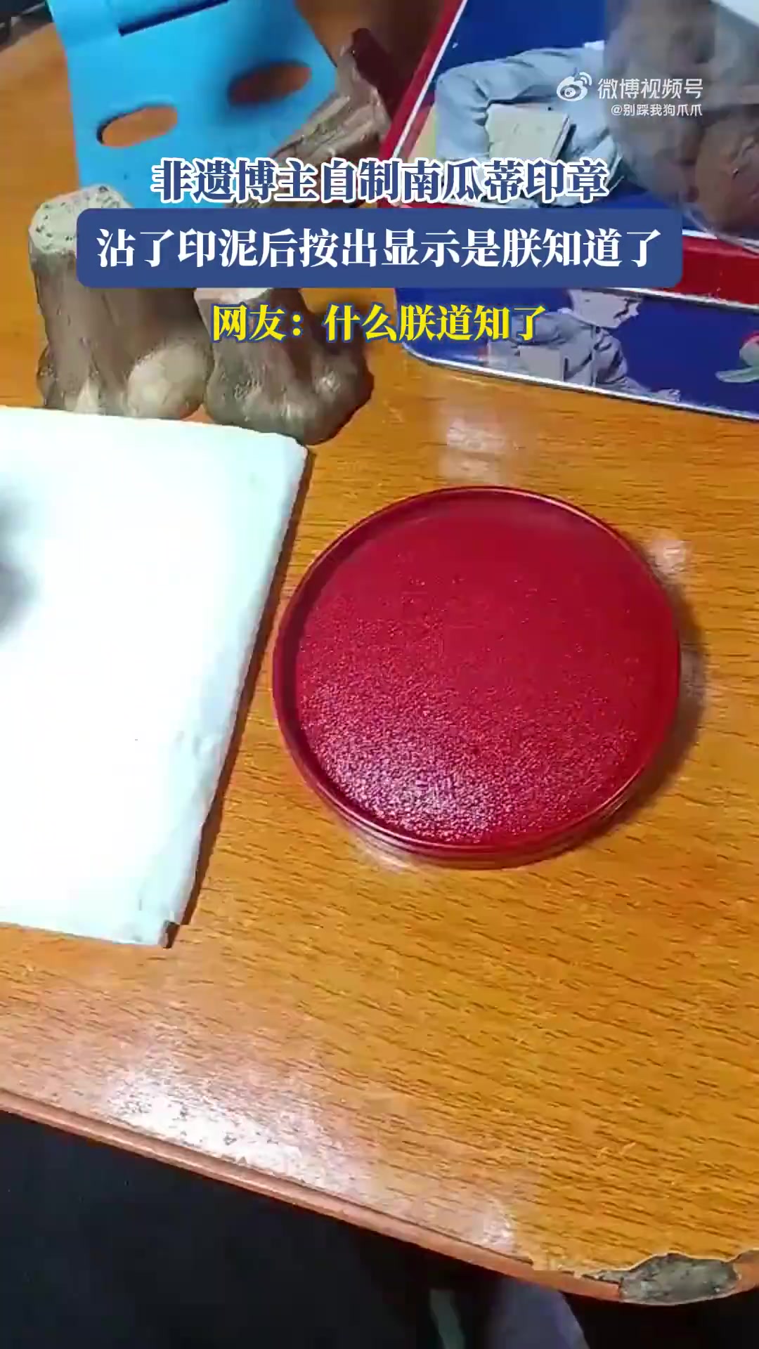 非遗博主自制南瓜蒂印章,沾了印泥后按出显示是朕知道了