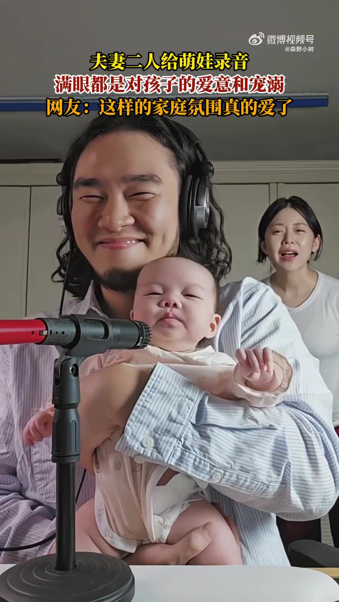 >夫妻二人给萌娃录音,满眼都是对孩子的爱意和宠溺