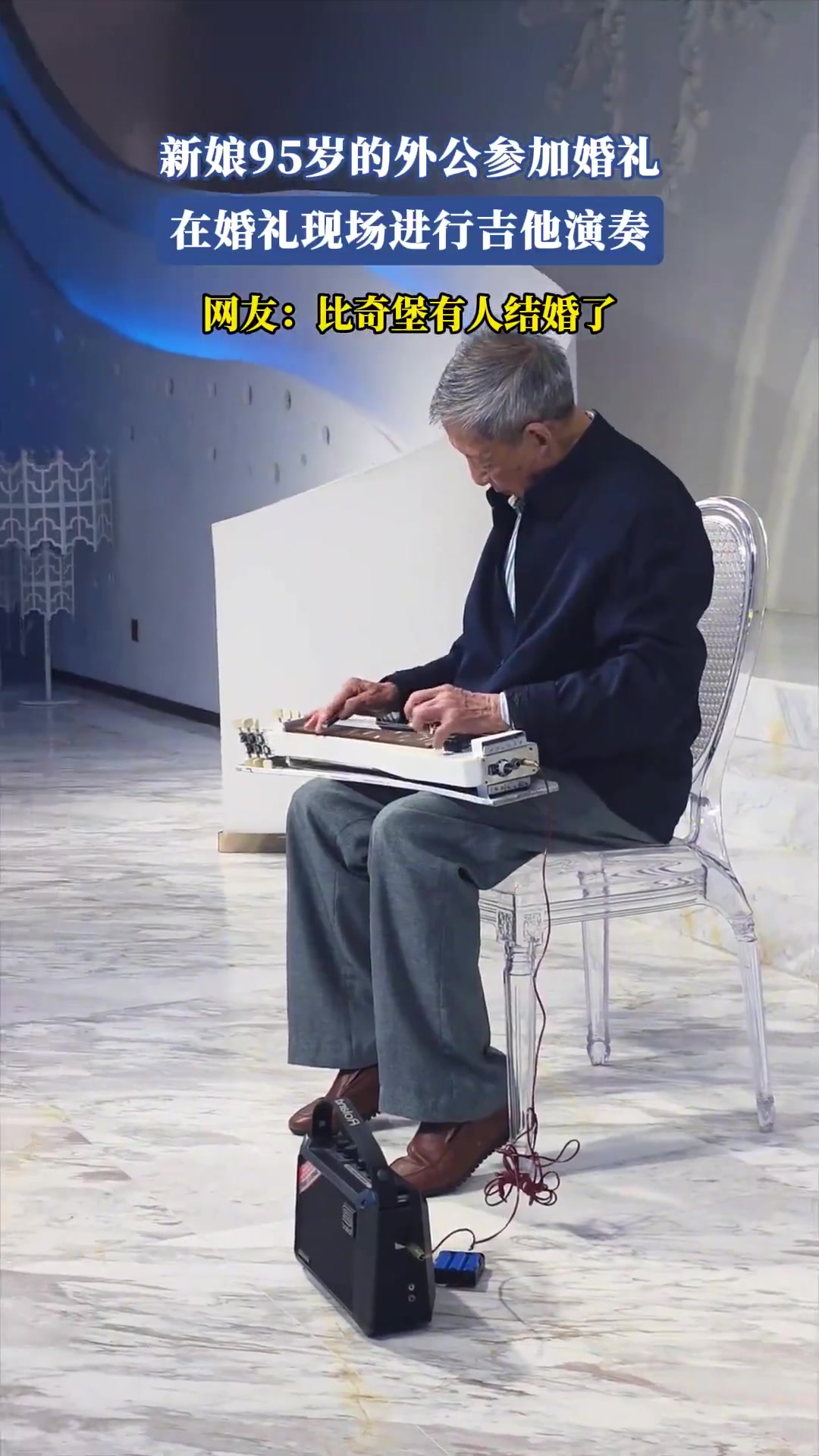>新娘95岁的外公参加婚礼,在婚礼现场进行吉他演奏