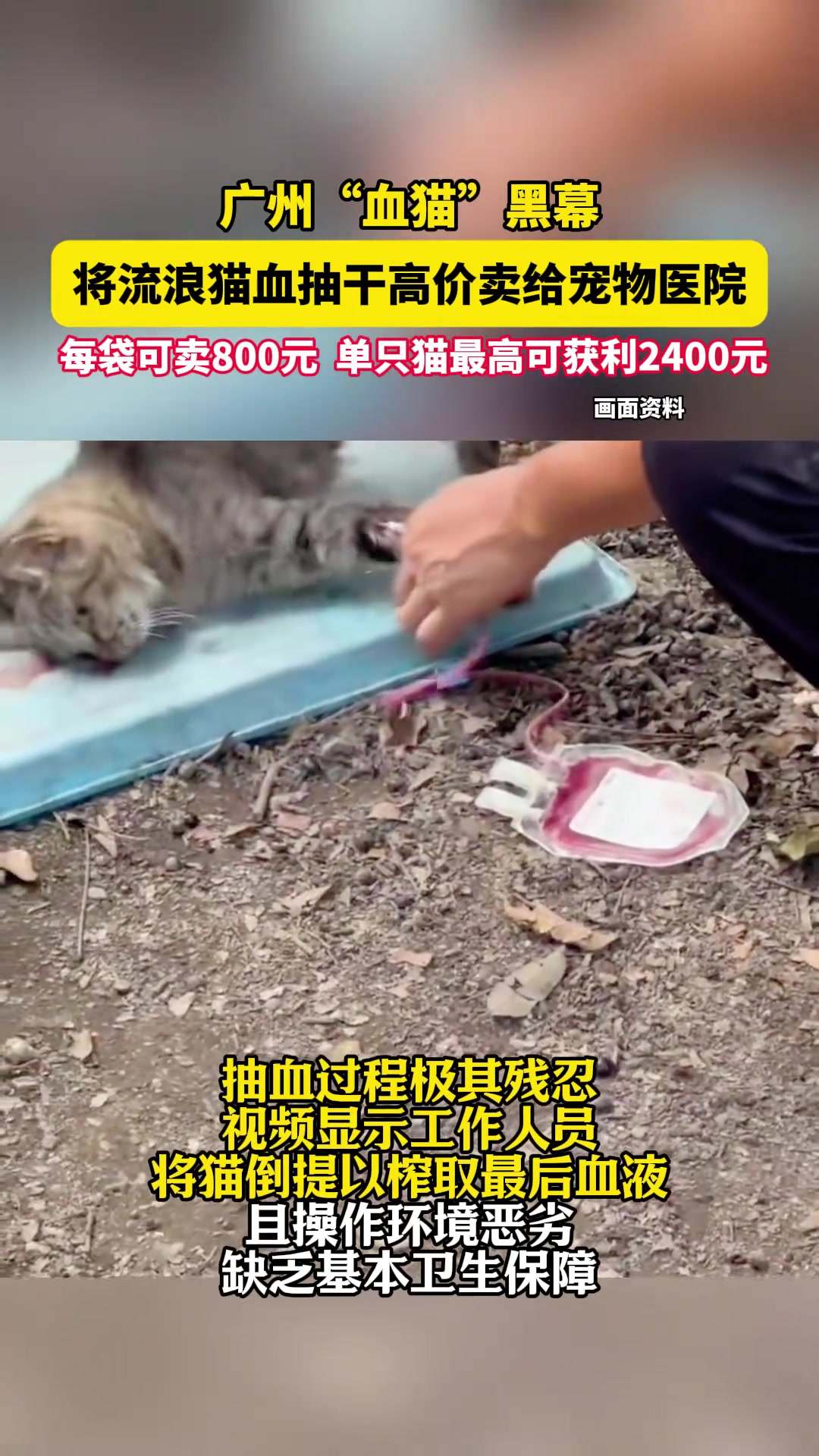 >将流浪猫血抽干高价卖给宠物医院, 每袋可卖800元