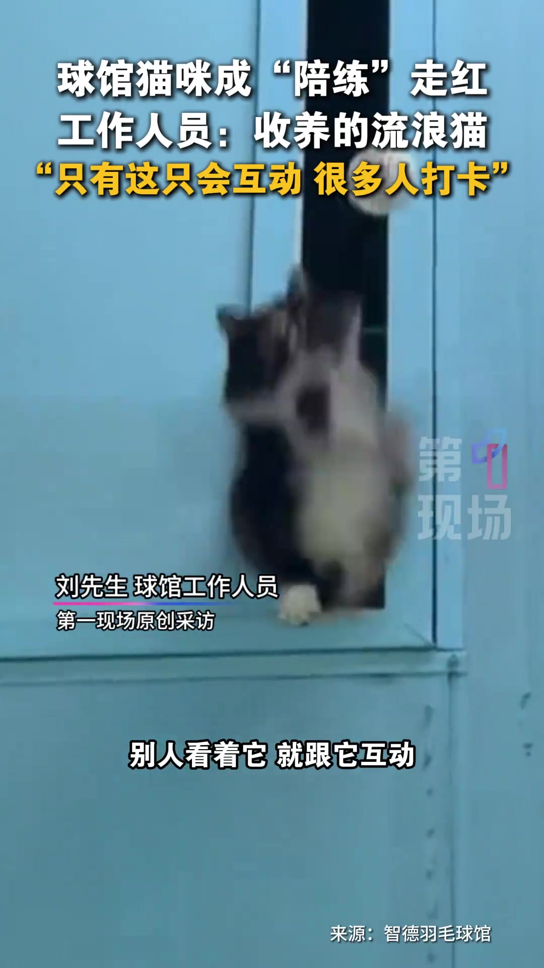 羽毛球馆收留的流浪猫成了球友的“陪练”,情绪价值拉满。
