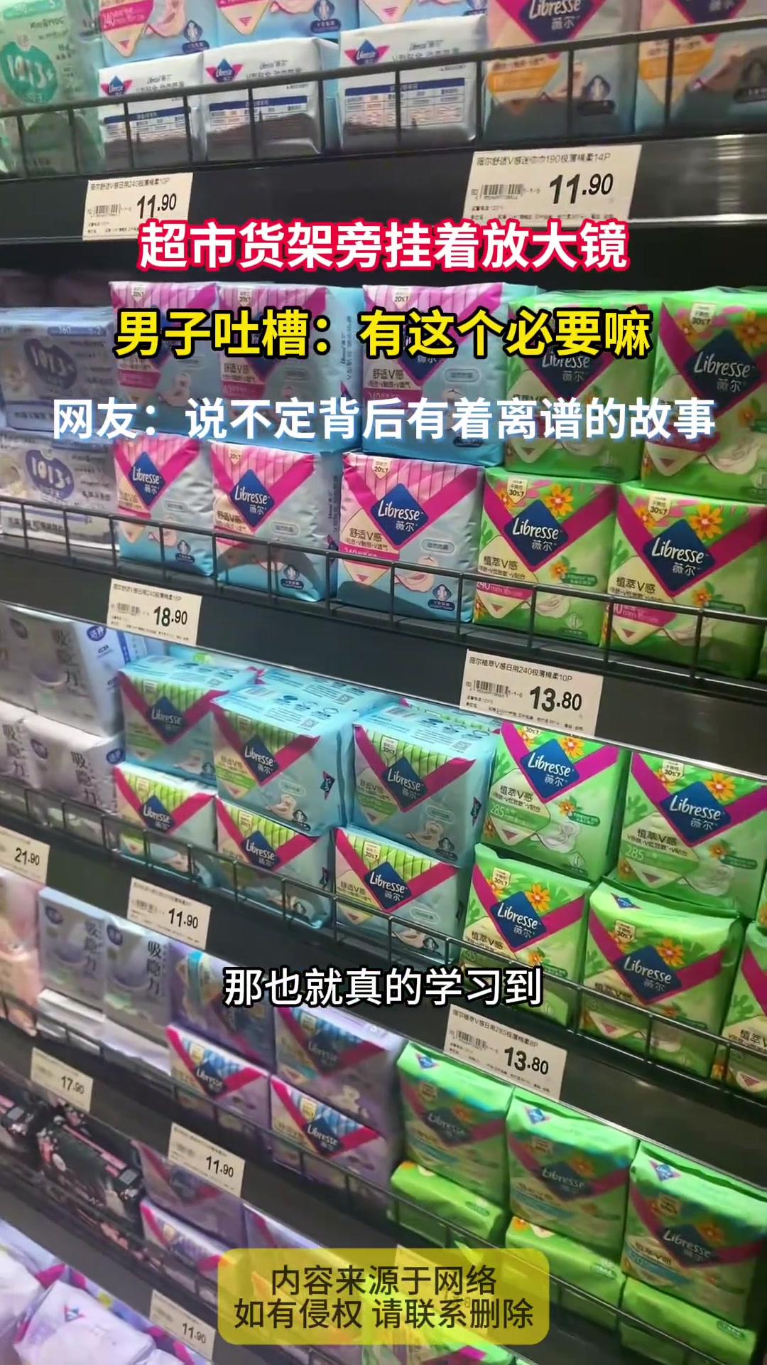 超市货架旁挂着放大镜,男子吐槽:有这个必要嘛