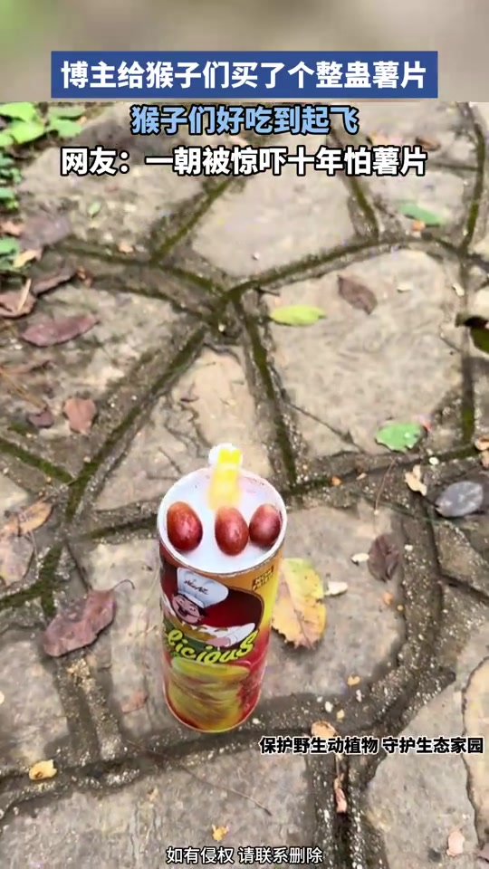 博主给猴子们买了个整蛊薯片,猴子们好吃到起飞,纷纷跑开