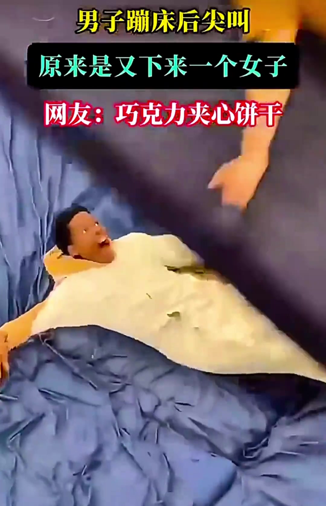 >男子蹦床后尖叫,原来是被紧接着的美女做成夹心饼干😂