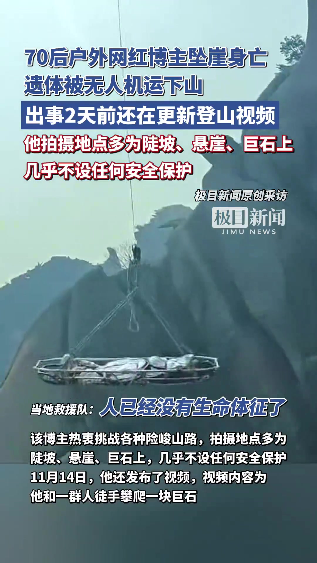>70后户外网红博主坠崖身亡