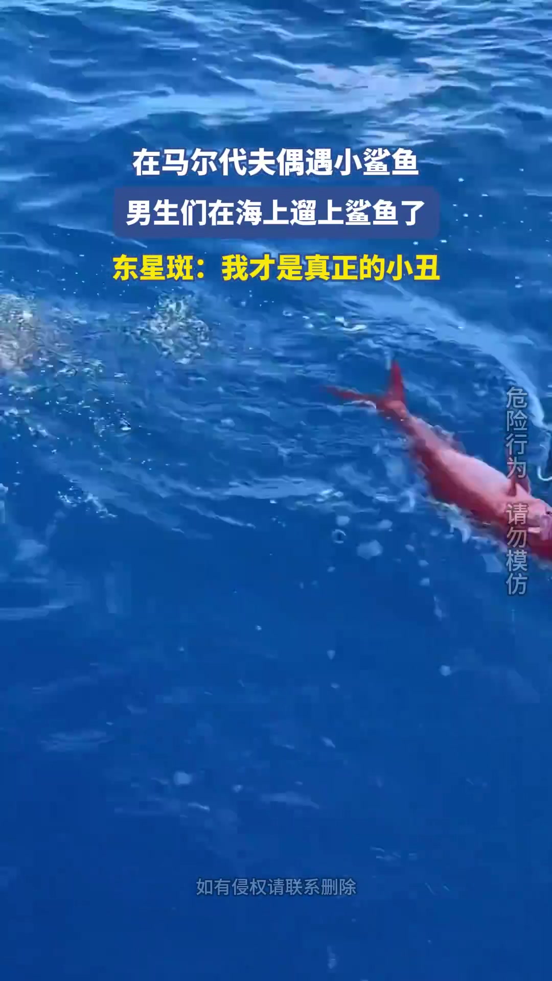 >马尔代夫偶遇小鲨鱼,男生在海上遛起了鲨鱼,东星斑:我才是小丑
