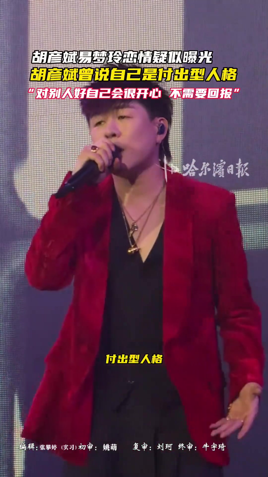 胡彦斌易梦玲恋情疑似曝光,胡彦斌曾说自己是付出型人格