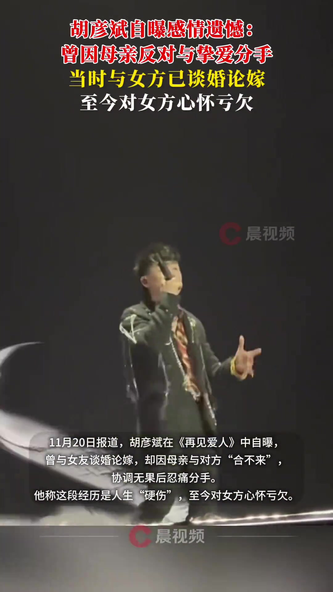 >胡彦斌曾有段感情因妈妈反对未能结婚,他称这段经历是人生硬伤