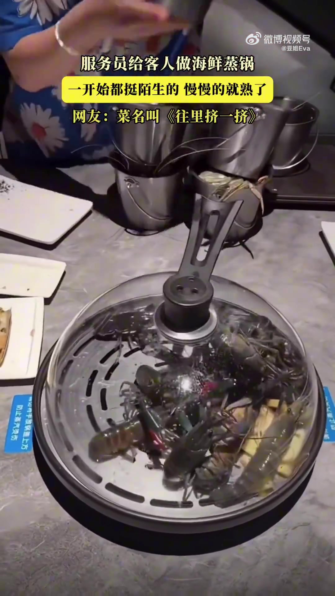 >服务员烹制海鲜蒸锅,从生到熟的奇妙过程