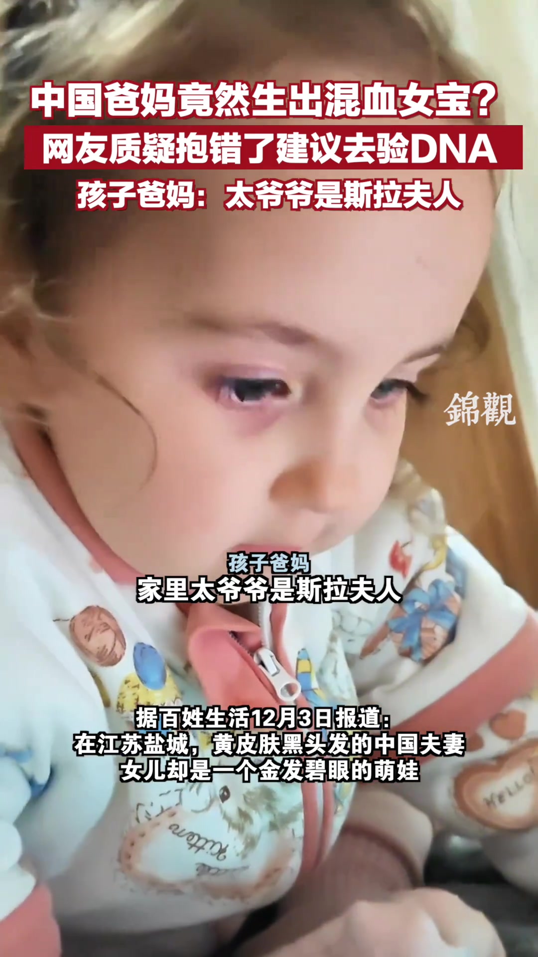 中国爸妈竟然生出混血女宝?网友质疑抱错了建议去验DNA