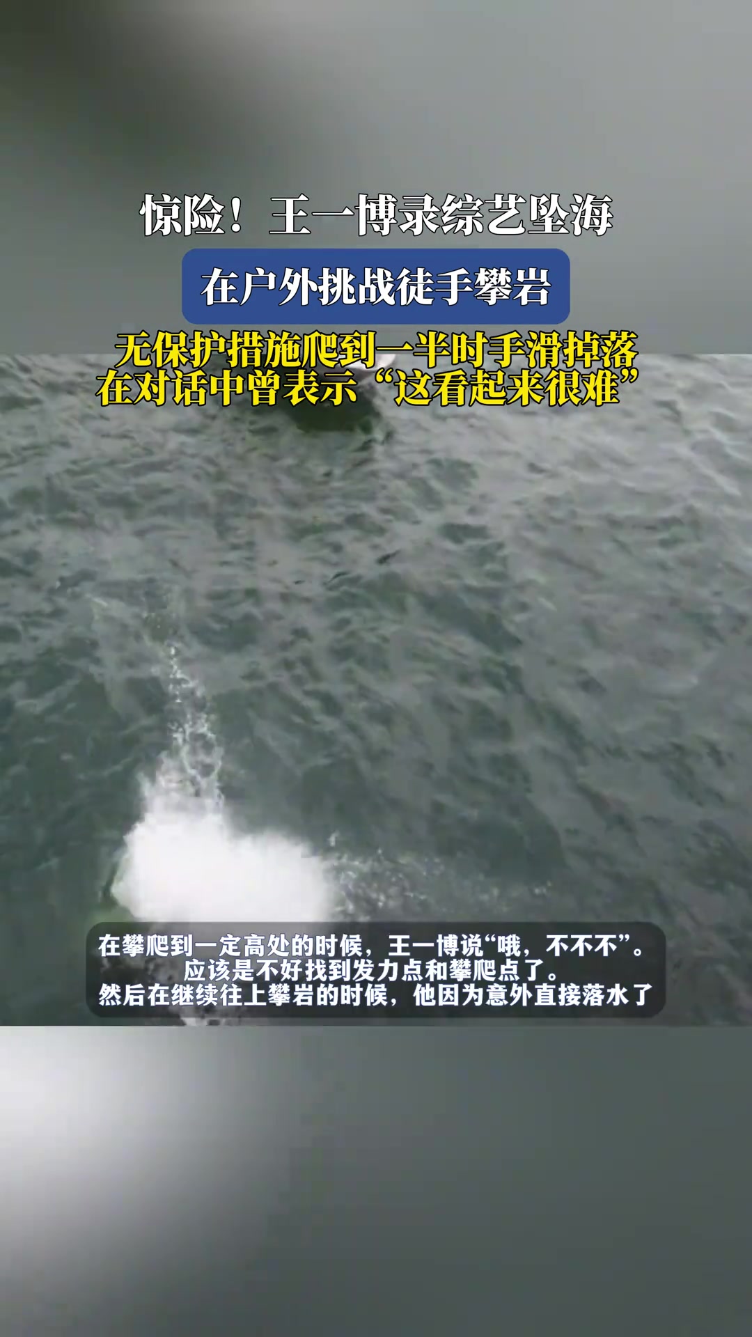 王一博录综艺坠海,在户外挑战徒手攀岩,无保护措施手滑掉落